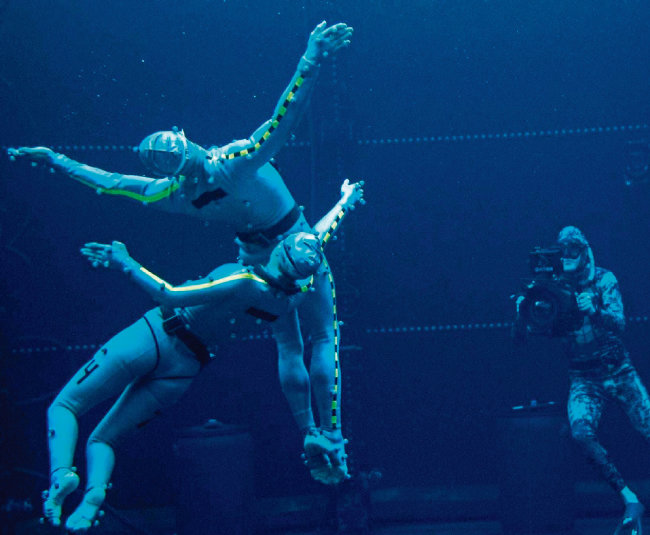 시고니 위버는 수중 촬영을 위해 굉장 많은 훈련을 받아야만 했고 어려움이 없지는 않았다고 했습니다. 하지만 세계적인 프리 다이버들이 특별훈련을 해주었고 많은 시간을 갖고 천천히 준비했다고 합니다. 그는 몸의 행동, 움직임뿐만 아니라 감정도 드러나야 한다고 말했습니다. 인간이 수영하는 것이 아니라 편안하게 보여야 했기에 이 점을 연기로 승화시켰고 사실은 굉장히 어려웠다고 말했습니다. 한편 케이트 윈슬렛은 물속에서 무려 7분 14초의 시간 동안 숨을 참으며 놀라운 열연을 펼쳤고, 촬영 현장에서는 프리다이빙 챔피언이라고 불렸다고 합니다. 그런 배우들의 노력과 성과를 본 제임스 카메론 감독은 이것이 이 영화가 이룬 진정한 기술 혁신이라며 배우들에게 극찬을 아끼지 않았다고 합니다.