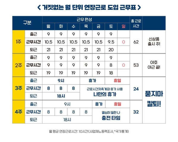 "이번 제도개편은 주52시간제의 틀 안에서 ‘1주 단위’의 연장근로 칸막이를 제거하는 것으로 근로시간의 총량을 늘리는 것이 아님"