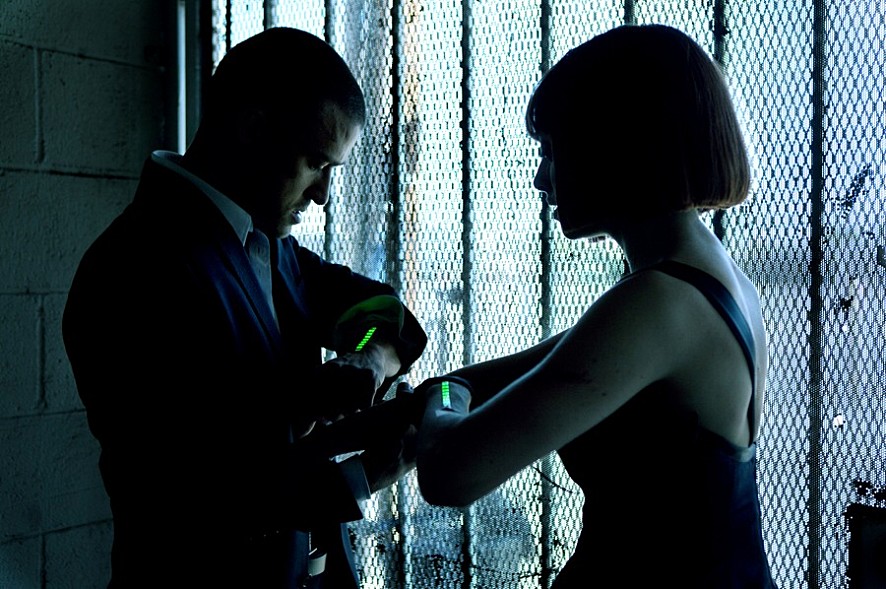커피 한잔에 4분, 버스요금 2시간 등 모든 것을 시간으로 값을 치러야만 삶은 살 수 있는 세상인데도, 자신의 목숨을 위해 1초라도 아껴야 하겠지만 인간다운 삶은 위해서는 시간을 쓸 수밖에 없는 아이러니한 세상이 보입니다. 삶을 계속하기 위한 시간을 벌지 못하고 다 소모해 버려 팔뚝의 숫자가 '0'이 되는 순간 심장은 멈춰버리고, 그 대신 늙지 않습니다. 이것을 좋게 말해, 25세가 되면 더 이상 늙지 않고 카운트가 되는 시간만 문제없이 계속 채우면 영원한 삶을 살 수 있습니다. 시간을 풍족하게 가진 부자들은 영생을 누리는 반면에 가난한 사람들은 매일 하루하루를 벌어가며, 목숨을 유지하기도 힘든 삶을 살게 됩니다. 노동을 할 수 있는 여건도 안된다면 시간을 훔쳐서라도 삶을 유지하는 세상이 영화 <인 타임> 속 세상입니다.
